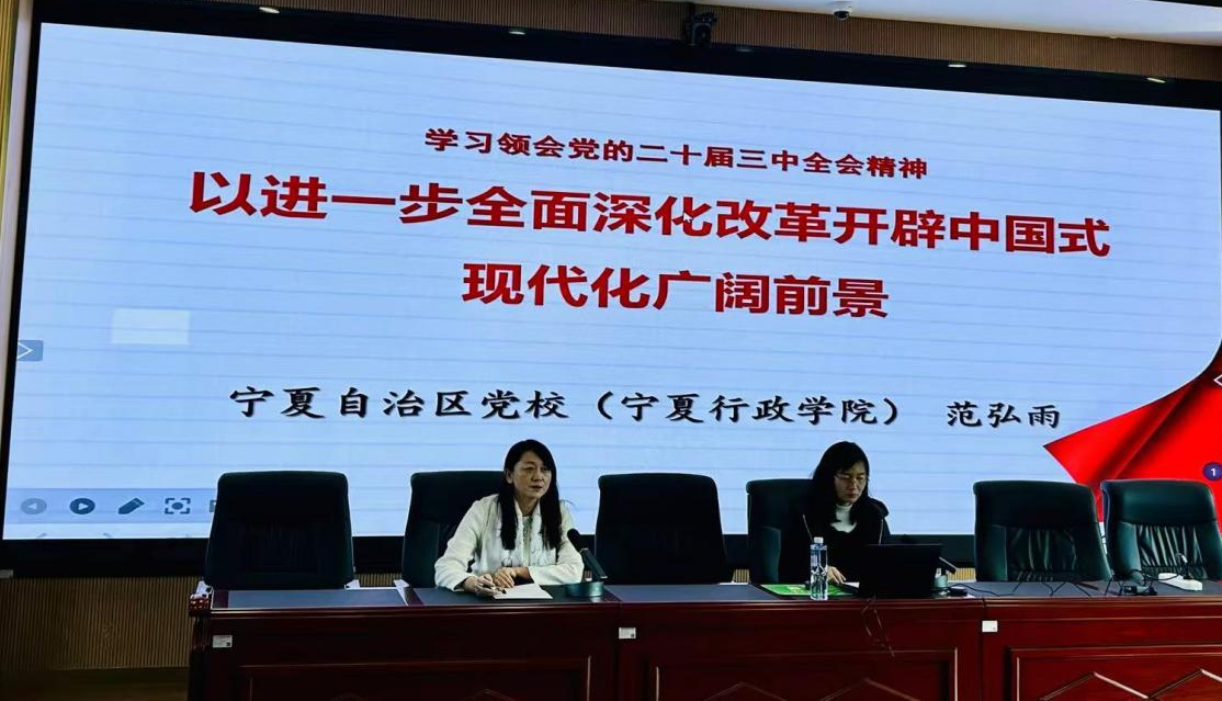 12月4日下午,h韩漫 邀请中共宁夏回族自治区党校政治部的范弘雨博士为学院教职工作“学习领会党的二十届三中全会精神”专题辅导。学院全体教职工参加本次讲座,学院党总支书记朱海燕主持讲座。