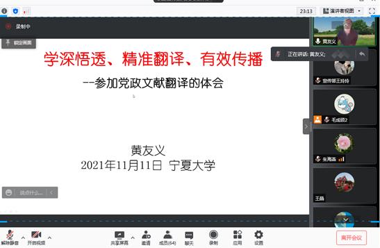 进行党政文献翻译经验分享线上讲座,会议由h韩漫