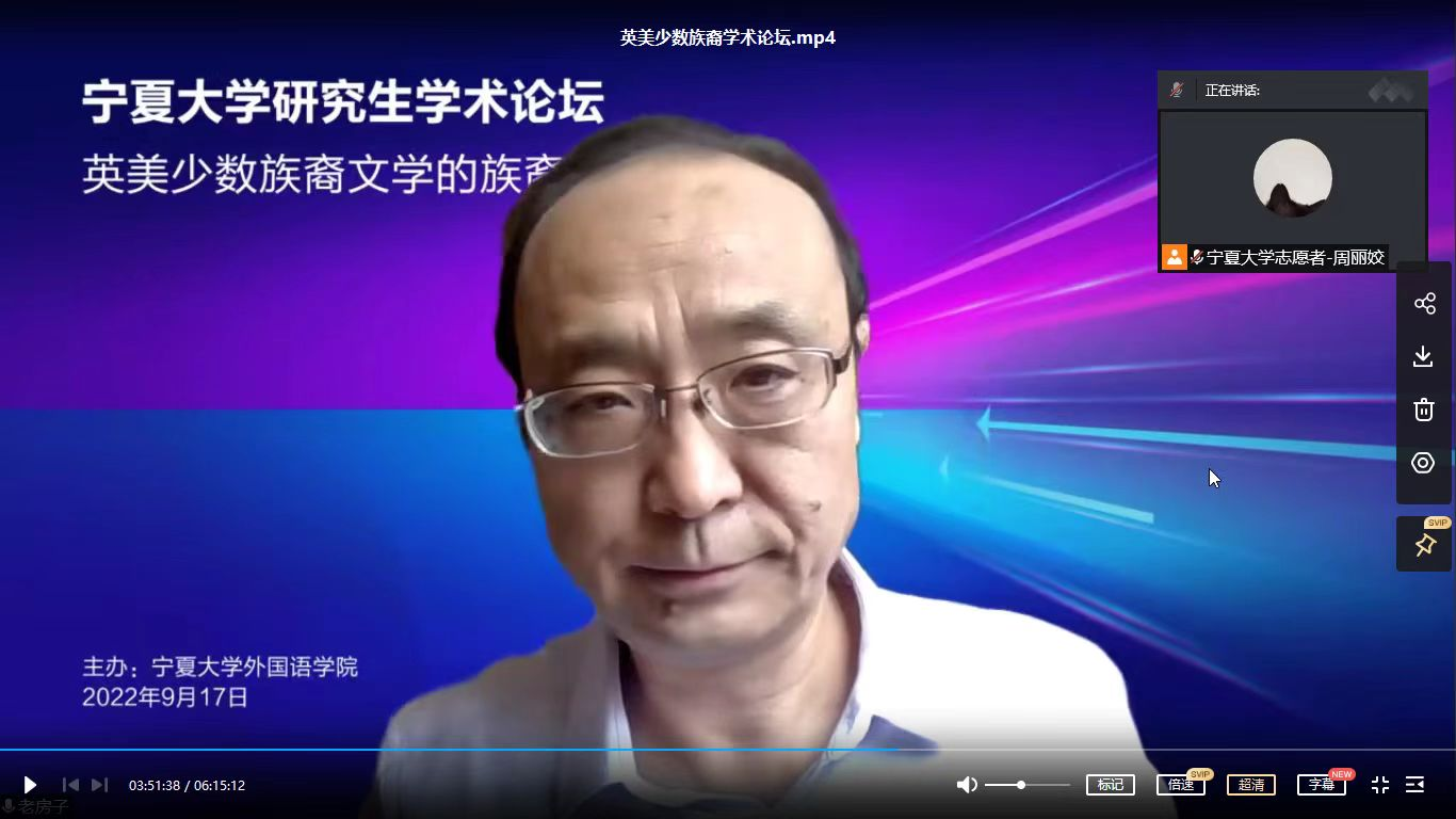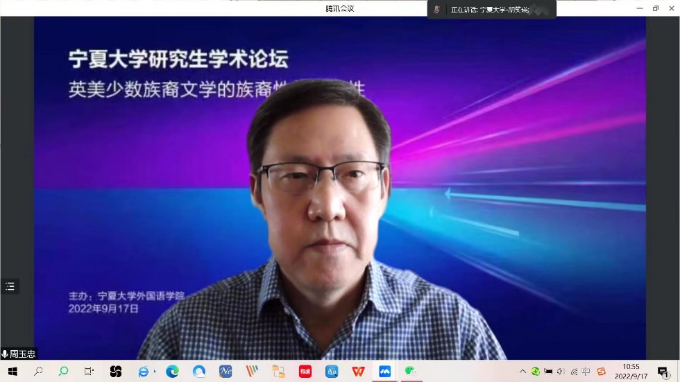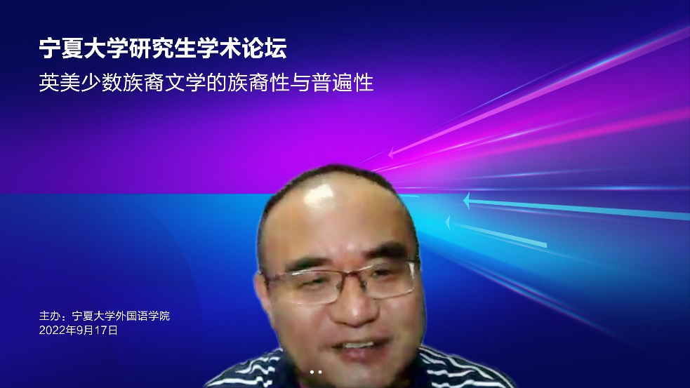 其次,陈广兴博士从微观的角度对少数族裔文学的特殊性进行了讲解,通过大量英美文学例证,印证了文学研究中族裔问题的重要性。陈广兴博士带领参会者对相关文本进行文本细读,通过文本细节的挖掘开拓了参会者的选题思路,增强了参会者对少数族裔文学研究的信心。