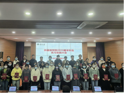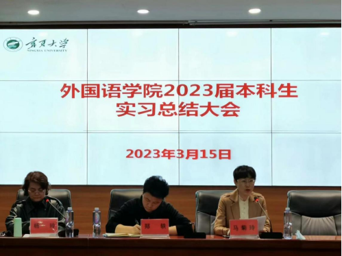 党委副书记郑轶老师、副院长马菊玲老师、全体实习指导老师及2023届毕业生参加了此次大会。英语系主任杨玲老师主持会议。