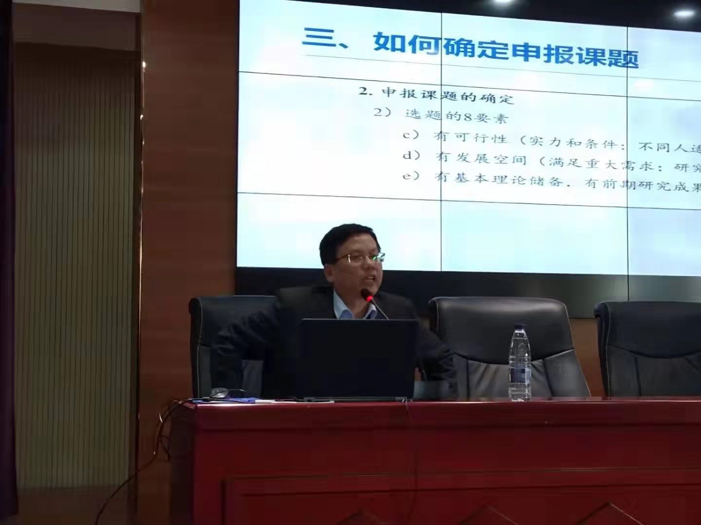 作了题为“问题驱动、科学选题、精心论证——国家社科项目申报的几点想法”的精彩讲座。讲座由藏志勇副院长主持,学院各级领导及部分教师出席活动并聆听了讲座。