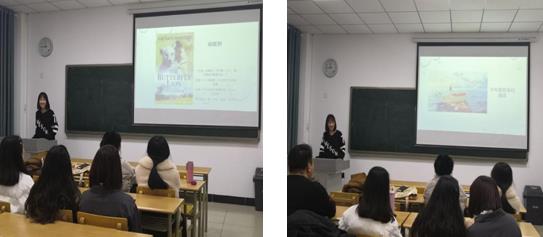 曹青同学本科期间读过很多英文书籍,所以跟大家分享了一些她觉得比较好的书,她希望同学们在紧张的研究生学习之余可以看看这些课外书来缓解压力。曹青同学所分享的书共有八本,分别是《蝴蝶狮》、《怦然心动》、《灿烂千阳》、《追风筝的人》、《巴别塔之犬》、《少年派的奇幻漂流》、《面纱》、《飘》。