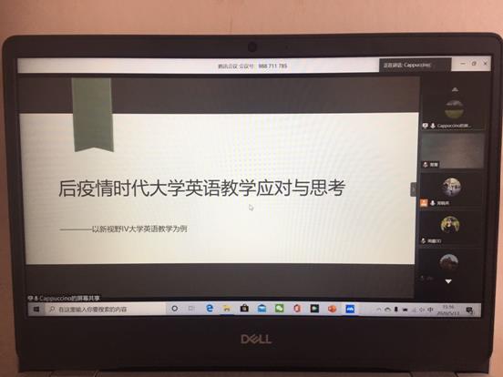交流“线上”教学经验,促进“线上”教学质量提升。为进一步促进《大学英语》“线上”教学质量的提升,充分发挥一线教师线上教学示范引领作用,公外部组织老师参加了教师教学研讨与交流共享会议。李少红老师就如何上好线上听力课程进行了交流分享;王朝老师从《大学英语》课程思政建设提出建立文化自信与民族自豪;洪春梅老师提出了“后疫情时代大学英语教学应对与思考”;王晶老师就如何有效组织线上小组讨论进行分享交流。活动中,教师们积极参与讨论,相互学习,对疫情期间的在线教学树立了新的教学理念,改进了具体的教学方法。此次活动取得圆满成功。