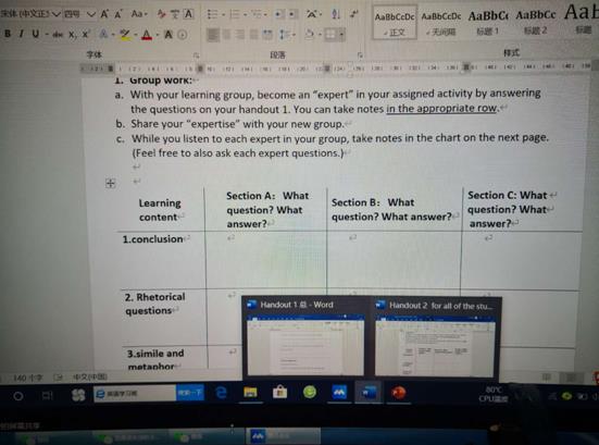 本次“线上”教学经验交流活动和“线上”公开课授课活动的意义不同于以往,在一定程度上对于鼓励教师采用新方法、新手段开展《大学英语》课程授课起到了积极促进的作用,激发了教师“线上”教学的积极性。为进一步探索《大学英语》课程“线上”+“线下”教学模式、进一步提高大学英语课程教学质量提供了交流平台。此次“线上”活动在教研室的认真组织和准备下取得了圆满成功。