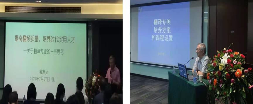 黄友义、柴明熲等专家进行了现场授课,黄友义教授从《专业学位研究生教育发展方案(2020-2025)》切入,强调翻译专业硕士、博士培养的重要性、必要性,就硕士专业学位论文发表、专业学位评价标准提出了看法,以生动的案例说明了翻译职业面临的种种问题。柴明颎教授从宏观到具体,从翻译专业学位的设置出发,围绕培养方案分享经验做法,对MTI课程设置逐一分析,强调MTI专业教学的定位与社会需求、学生实际操作能力的培养。