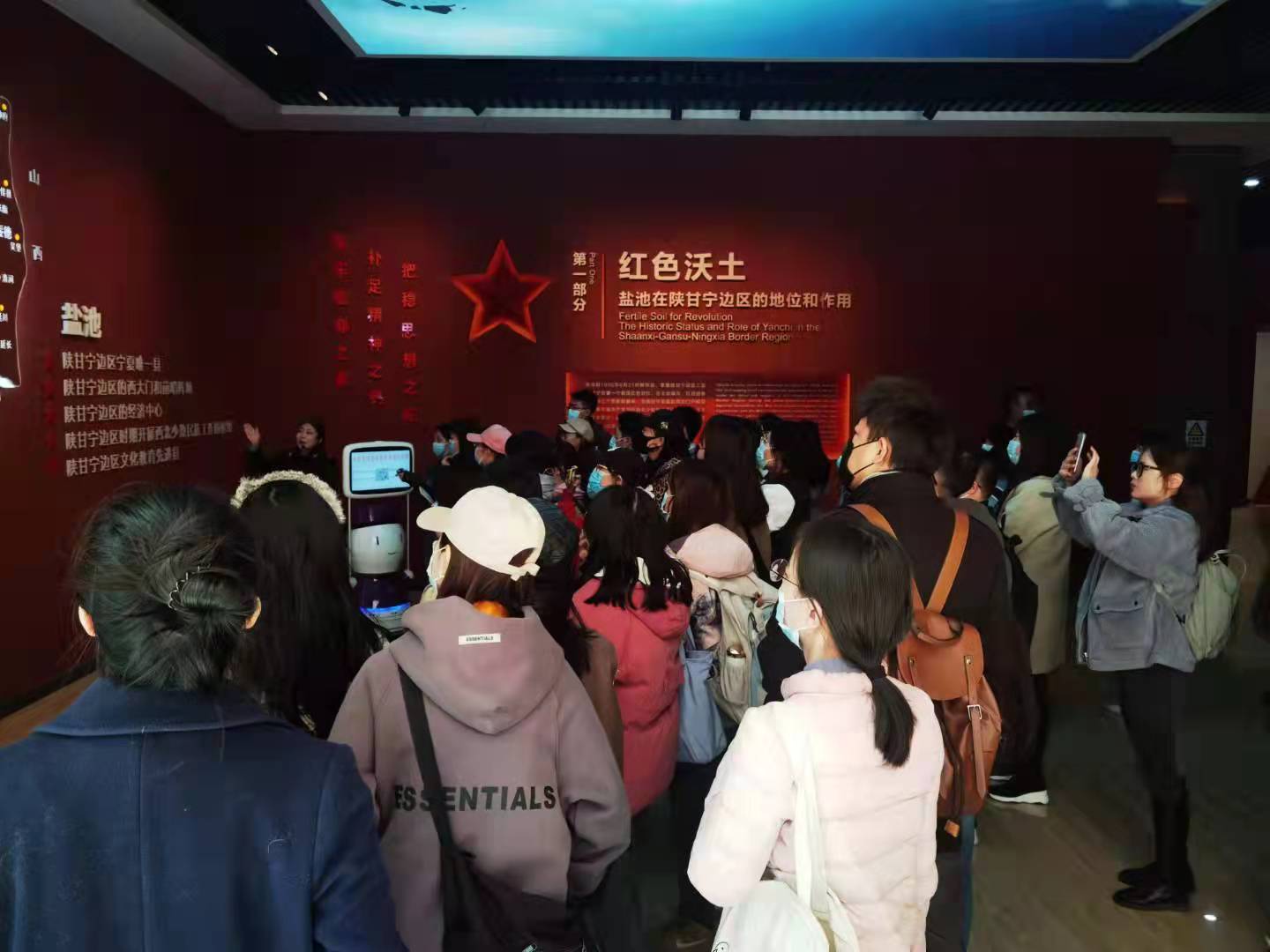 团队一行首先到达盐池县革命纪念馆,在讲解员的带领下,大家了解了盐池县在陕甘宁革命老区中发挥的重要作用,也对馆内标志牌、展品牌进行拍摄,共同探讨标识语的英文翻译版本。大家在聆听讲解的同时,也注意观察标示牌上不同历史事件的文字介绍和英文翻译,发现了其中许多英文翻译仍存在需要改进的地方,这次活动使得大家在革命精神的熏陶中加深了对生活实际语境中的翻译的认识。