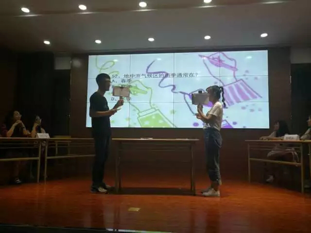 在比赛中间还穿插了互动环节“手机扫一扫,现场答题”的活动,并根据答题结果派发小礼品。观众热情高涨,现场气氛十分活跃,大家都在玩中学得不亦乐乎。