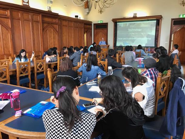 研修期间,参训教师们认真聆听了国外专家的讲座,增长了见识、活跃了思维,让各位老师获益匪浅。在为期四周的研修中,共有7位教授的授课和讲座,并进行了交流探讨。包括:英语教学法课程、教学英语、讨论交流、学术讲座等。不仅提高了语言技能,也接触到了世界前沿的教学模型和理念,如:Project of Zero (零点计划)、TFU(理解性教学模型)、UDL(通用学习设计)等理念。教授们耐心敬业地讲授,开阔了各位老师的视野,促使大家对学习空间(learning space)、学生参与(students’engagement)、教学评估(assessment)等方面进行了深入的学习和反思。参训老师们一致认为,可以借鉴UCC教授分享的理念和教学方法,融入到目前学校人才培养方案修订过程中,制订新的教学大纲。在今后教学过程中,不断地践行学到的教学理念,采用不同的方法提高学生学习的参与度,为学生建模,在教学过程与教学评估设计方面充分体现以学生为中心,进一步推动教学课程改革,提升教学质量。