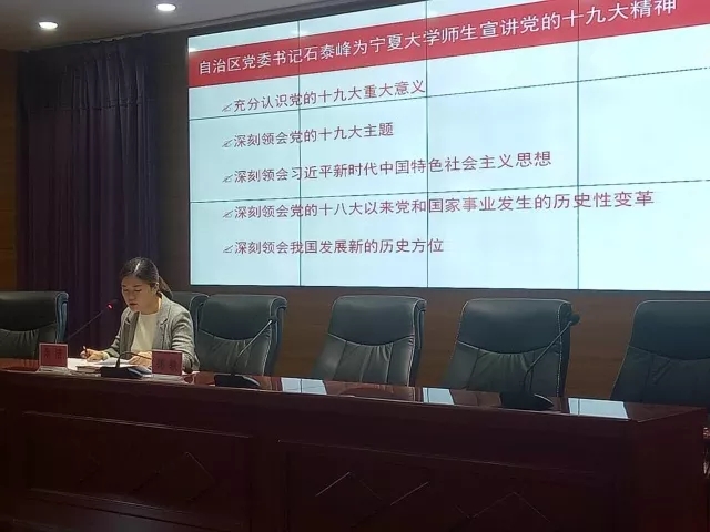宣讲党的十九大座谈会的体会,带领学院各班班长、团支书,入党积极分子、建党对象,学习了石泰峰书记的讲话。余洁老师按照石泰峰书记讲话的一个充分认识和八个深刻领会,通过导读和分享学习体会的方式带领大家学习石书记讲话精神。