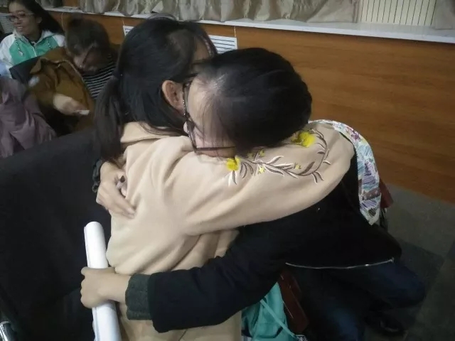 紧接着,大家进行了有趣的活动---"爱的抱抱"。一开始,同学们感到又紧张又羞涩,随着活动的进行,渐渐的,大家都能够热情地去拥抱身边的人,传递出一种友好又温馨的讯息。最后,每个同学都收到了一张卡片,选择一位感激的人,写下对他最想说的话。通过之前的三个活动,同学们都若有所思,在卡片上写下了自己最真挚的话语。
