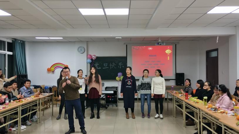 全体研究生与老师们共聚一堂,欢庆元旦佳节。