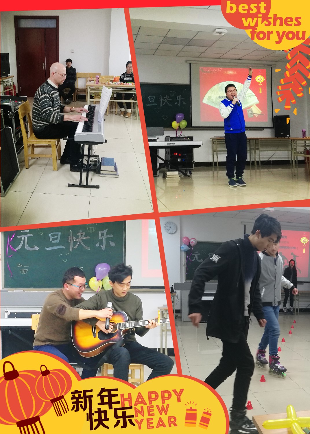 学子的语言天赋展现地淋漓尽致。花式轮滑秀更是嗨翻全场,动感的音乐、炫酷的旋转,引得台下尖叫连连。外教Dale的电子琴演奏、孔明老师的独唱把晚会推向了高潮,校研究生院学生会副主席刘向涛同学的倾情助演更是为晚会增添了欢快愉悦的气氛。随后,情歌对唱《红玫瑰》和《想把我唱给你听》浪漫温馨、轻快悠扬。小品表演《宿醉狂想曲》幽默风趣的台词、滑稽搞笑的表演更是引得台下观众掌声连连,欢笑不断。最后,董小萌同学魅力四射的爵士肚皮舞跳出了青春的步伐、舞出了专属于同学们的靓丽风姿,现场欢呼声、喝彩声不绝于耳,晚会在悠扬的旋律中落下帷幕。
