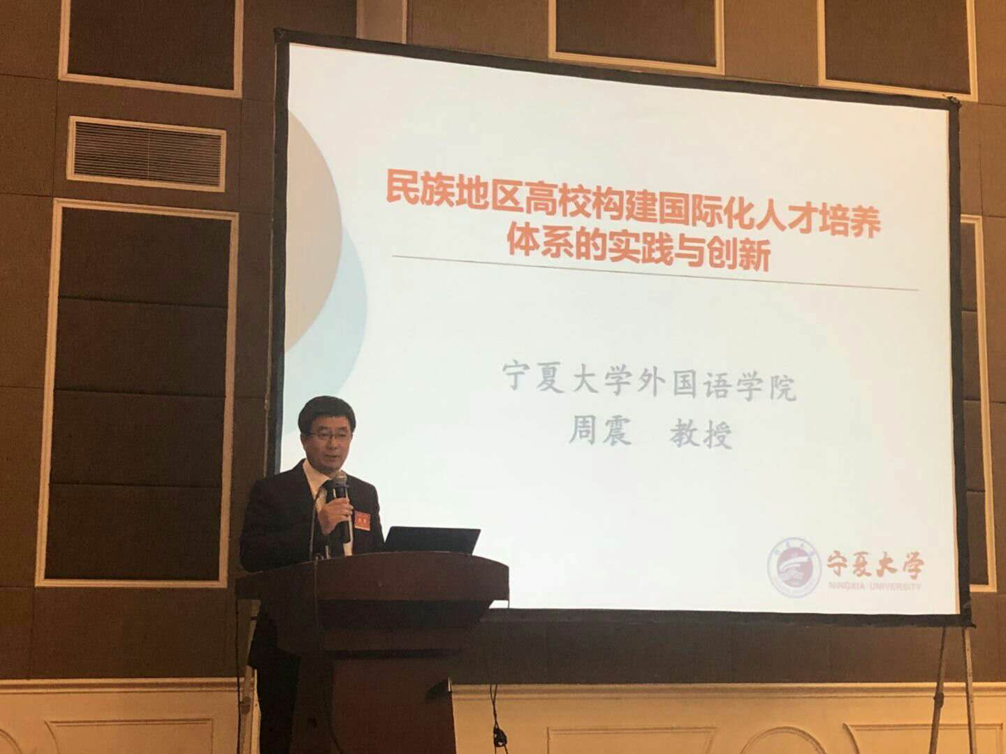 周震院长和其他来自全国的十一位知名专家学者应邀参加了高端论坛的“基于院校特色的国际人才培养”专题论坛并在论坛上作主旨发言。该论坛紧紧围绕国际人才培养,从课程体系设计,专业特色打造,学校国际合作等方面进行了专项研讨。论坛分上下两场,分别由北京外国语大学韩宝成教授和张剑教授主持。 周震院长以如何在区域高校构建国际化人才培养体系为主题探讨了宁夏高校近些年来所做出的实践与创新。分享了h韩漫