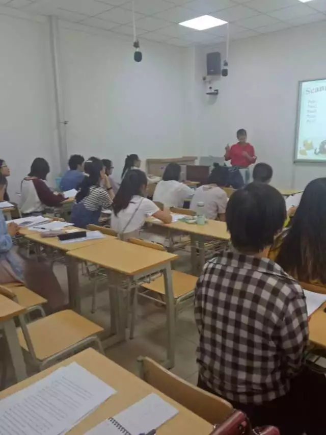 吴蓉老师所带的2015级英语专业《教学法》课程微格教学活动。在两节课的教学中,吴蓉老师安排了班里3名2015级本科生进行了微格教学的讲课实践。三个同学分别就初中英语里的课程内容以及阅读技巧进行了真实的课堂展示。从讲课环节来看,每个学生都能够按照任课教师所传授的教学法的知识以及课堂规范的要求,进行实践操作,讲课风格各具特色,但每个人也都有各自的不足和缺点。每个学生讲完,吴蓉老师都进行点评,并从教学法的角度给同学们提出中肯的建议,使同学们在进行教学实践的同时又补充了相应的理论知识。郭鸿雁教授对每个同学的讲课进行了耐心细致的点评,每个点评都风趣幽默,引来同学们的阵阵掌声和笑声,听得同学们频频点头。郭老师希望同学们在今后的学习中注重加强语言基本功的训练和教学方法的研究,为毕业后成为一名合格的教师做好充分的准备。