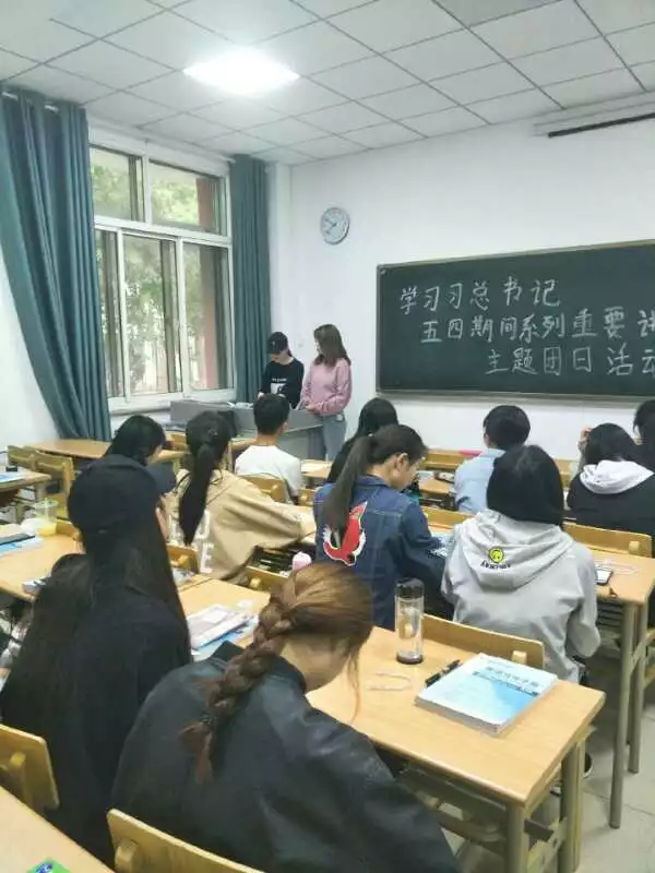 举办,2015级、2016级和2017级各班的团支部分别开展该团日活动。本次活动组织形式多样,以观看视频、谈感想、演讲、集体讨论和知识竞答(设有奖品)等形式展开。在对习近平总书记在北大的系列讲话内容认真解读之后,各班团支书以谈感想的形式引出本次团日活动主题,各班团支书讲解了五四运动的背景,五四运动源于北大,爱国、进步、民主和科学的五四精神始终激励着北大师生同人民一起开拓,同祖国一起奋斗,青春理想、青春活力和青春奋斗是中国精神和中国力量的生命力所在。在介绍完背景之后,各班团支书倡导我们作为五四青年在实现中国梦的新征程上,应该继续发扬五四精神,为民族、为国家、为人民做出新的、更大的贡献。随后的五四系列精神的小片段更是激起了同学们浓厚的兴趣,它着重解释了五四精神的实质内涵。