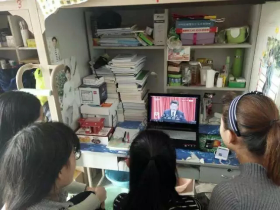 师生员工通过各种形式收看、收听习近平总书记在中国共产党第十九次全国代表大会上的报告。