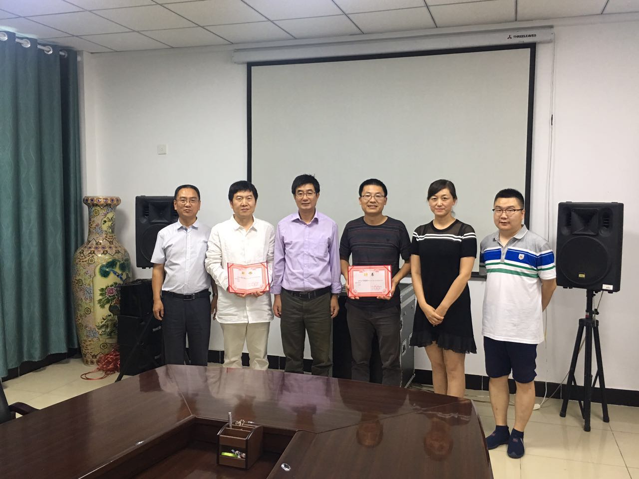 两位教授就现今学院在国际交流方面面临的一些困难和问题提出了指导性建议。并在科学研究、学生访学、联合培养人才等方面商讨了与学院的合作意向。最后,周震院长向二位颁发了兼职教授证书,并合影留念。