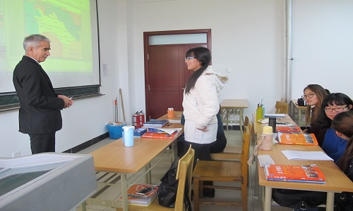 在第一节课上,库尔班诺夫教授以《丝绸之路上的土库曼斯坦:历史和现代》为题,为同学们介绍了土库曼斯坦的综合概况和当今的发展。首先,他细致地介绍了土库曼斯坦当前国家政治、经济、地理区位、历史文化等基本情况,增加了同学们对土库曼斯坦的了解。接下来,教授介绍了土库曼斯坦在古丝绸之路上的地位,及历史上丝绸之路对土库曼斯坦城市建立、教育发展、商贸交流的促进作用。最后,结合近五年土库曼斯坦同中国、欧洲国家、联合国等国家和组织在能源经贸和现代交通的开发和合作,及土库曼斯坦国家支持旅游和体育事业的发展,向学生们介绍了土库曼斯坦在现代丝绸之路经济带建设中的国家定位及发展优势。