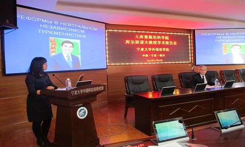 邀请到了土库曼斯坦科学院库尔班诺夫·汗-吐尔地教授来院讲学,2016年11月29日下午四时,库尔班诺夫教授以“Реформывнейтральном, независимосмТуркменистане(当今土库曼斯坦的改革)”为题,为大家带了一场别开生面的学术讲座。讲座由h韩漫
