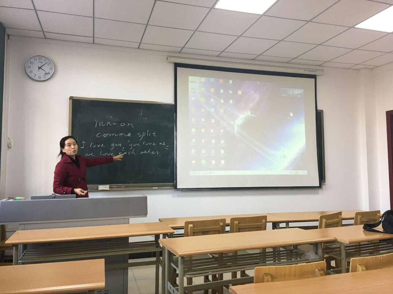 大学英语四级考试专题讲解主题活动包括分模块教学经验交流环节和集体讨论环节。在第一环节中,郑晓英老师就四级写作技巧、三种类型作文及作文改错方面同各位老师进行交流;韩芳老师就四级听力的题型分值和解题技巧与策略进行了讲解;赵晓娥老师、杨晓丽老师、以及杨胜兰老师分别就阅读试题中的选词填空、长篇阅读、传统阅读技巧进行了经验交流;张静老师分享了四级翻译题型的教学方法。之后,各位老师就大学英语四级题型解题技巧和方法进行了交流和讨论,教研气氛活跃,老师们均表示获益匪浅。