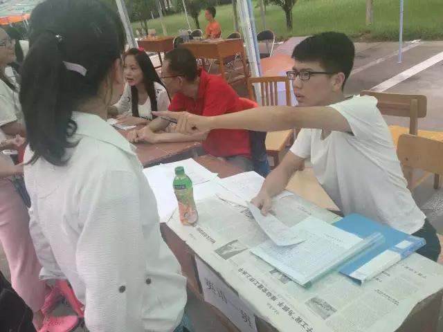 迎新工作正式开始,外院大本营中七名兼职班主任热情地迎接新生们——下过雨的天空仍有几分阴翳,然而心系迎新工作的工作人员们心中骄阳似火,为迎接新同学挥洒汗水。