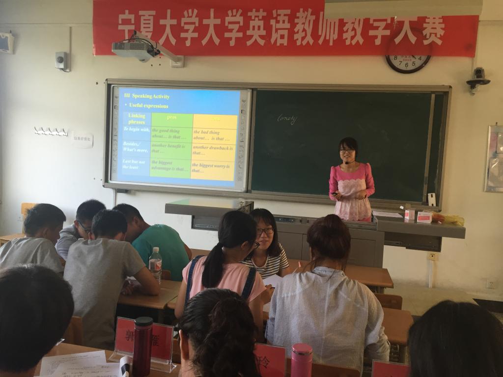 各位参赛教师表现精彩纷呈,展现了出色的教学设计能力,讲课条理清晰、重点难点突出、课件新颖生动,能够灵活采用恰当的教学方法开展有效教学,教师们教态自然,有亲和力,教学效果良好。赛后,五位评委分别对参赛的教师进行了精彩的点评,褒奖了教师们的优点,也提出了需要进一步改进的意见。本次教学比赛是2016年“外教社杯”全国高校外语教学大赛宁夏赛区决赛的初选活动,各组评选出的前三名教师将于10月参加宁夏赛区的总决赛。此次活动为公外部的青年教师搭建了一个展现自我教学和改进教学的交流平台,为提高我校大学英语教师教学创新能力、推动我校教学改革起到了积极的促进作用。此次比赛也是一次以“观摩学习,共同促进”为主题的教研室活动,全体公外部教师积极参加了本次观摩学习活动。
