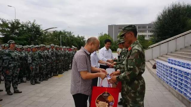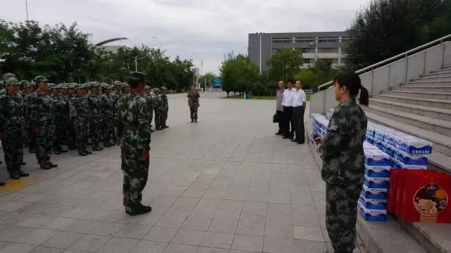领导也始终关心着本院新生的训练情况。为保证军训期间学生们的身体健康,营养均衡,学院领导为每位新生发放了慰问品。
