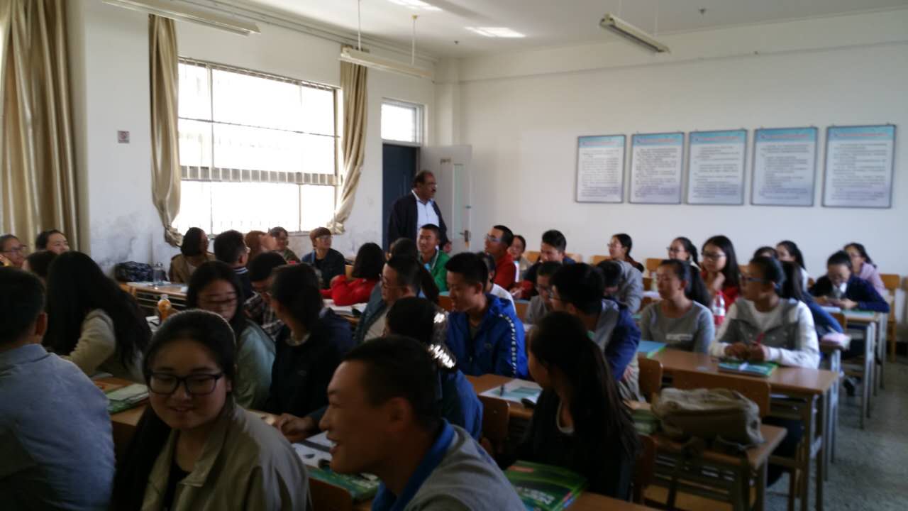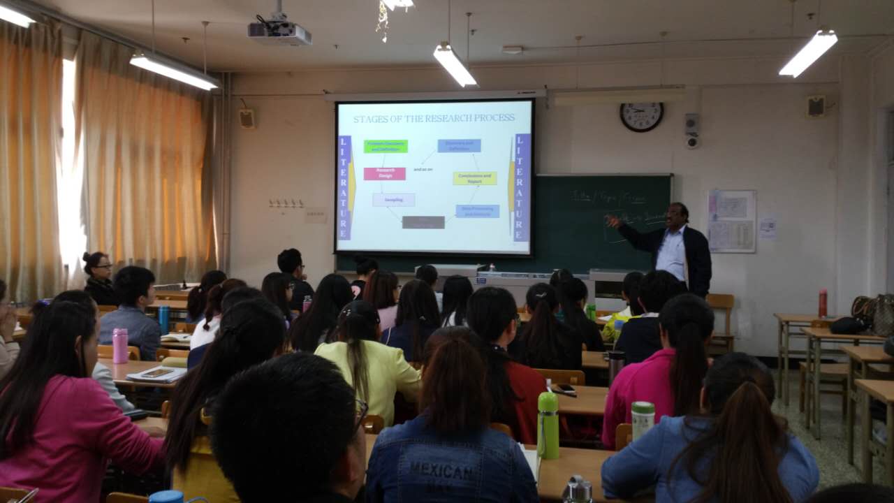 9月29日上午为2016级研究生英语一班的同学们进行了主题为"How to go tothe research" 的讲座。Arsaythamby Veloo 教授从如何进行广泛阅读之后确定“topic, title, 和focus”开篇,然后就“Quantity和 Quantitative”两种研究方法中的“取样“和“数据采集”与同学们进行了互动交流。在为2016级教育学院的本科新生讲座中,Arsaythamby Veloo教授以“Attitude is every thing ”为主题与本科生们进行了讲座。Arsaythamby Veloo教授的语言简洁、风趣,在整个讲座过程中,课堂上不时爆发出热烈的掌声和欢笑声。