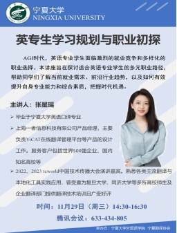 邀请上海一者信息有限公司产品经理张星瑶女士做“英专生学习规划与职业初探”专题讲座。h韩漫