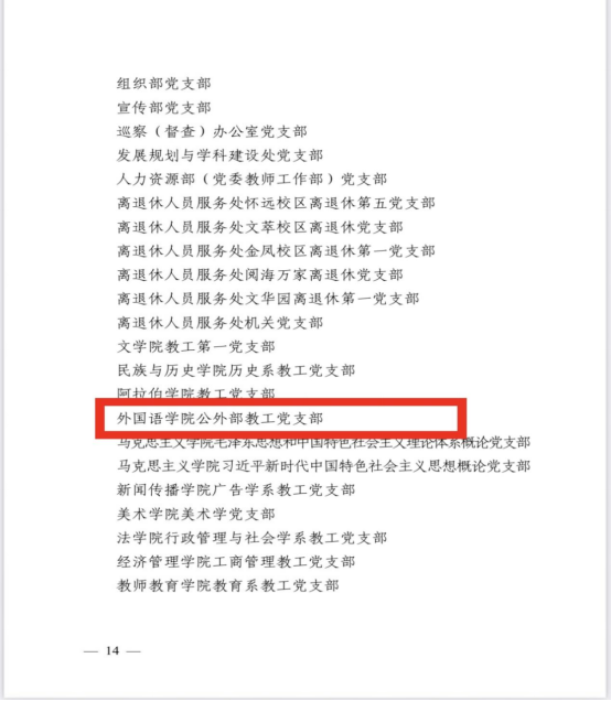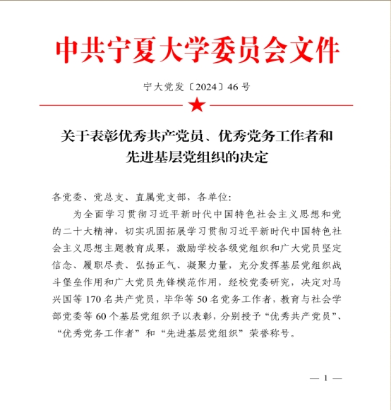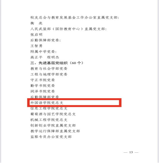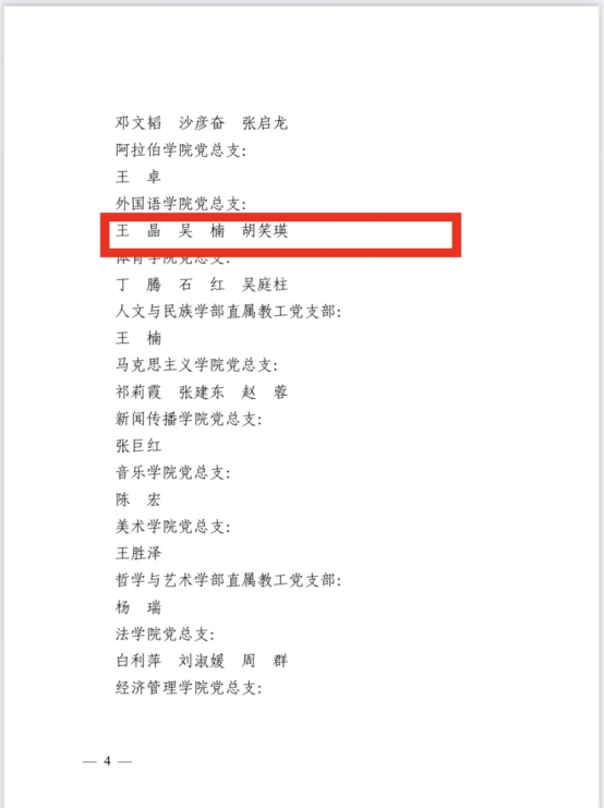 2024年6月28日,h韩漫 在贺兰山校区笃行楼一楼报告厅召开“七一”表彰大会,h韩漫 党总支、h韩漫 公外部教工党支部获得先进基层党组织荣誉称号,胡笑瑛、王晶、吴楠三位教师获得优秀共产党员荣誉称号。
