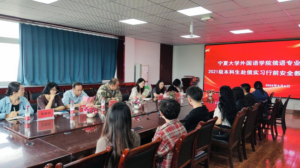 领导班子全体成员,以及2021级赴俄实习的9位同学参加了会议。会议由东语系系主任张海娟老师主持。