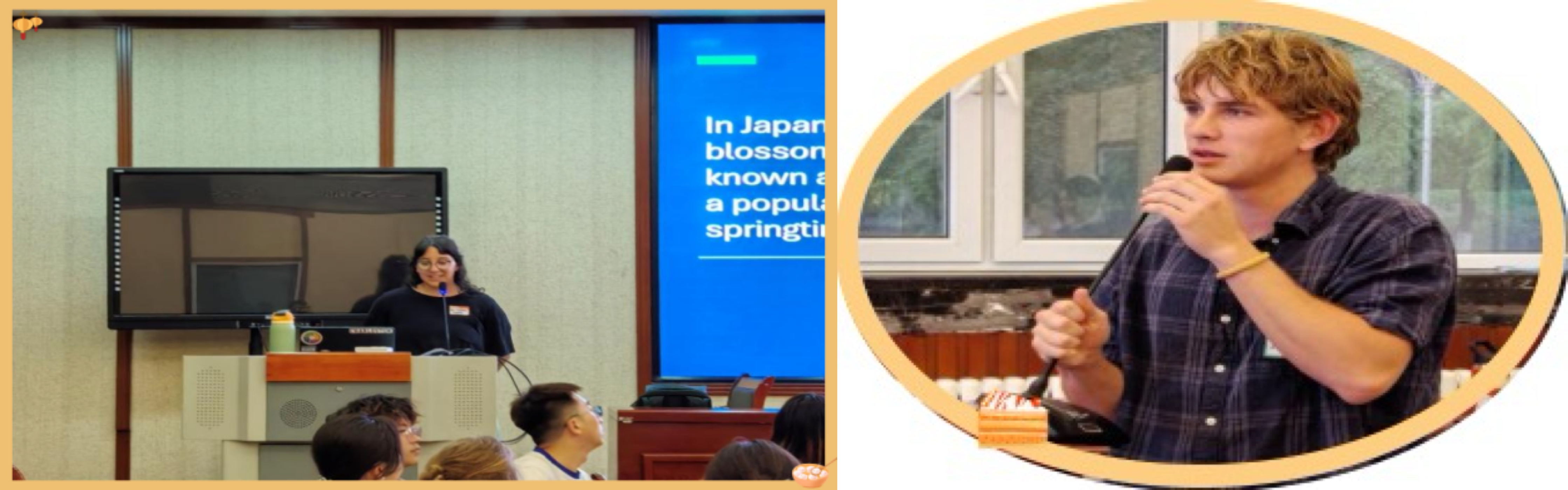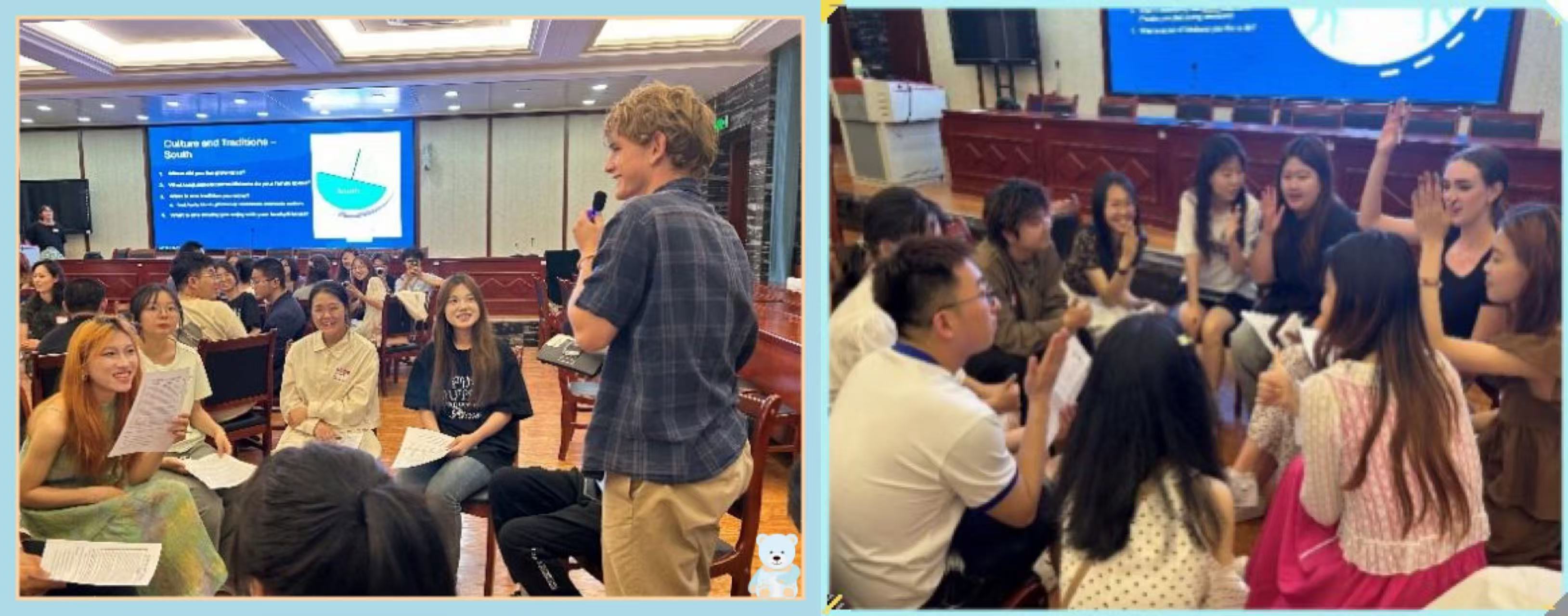 逸夫楼一楼报告厅顺利举办。活动由Guerra老师主持,英语专业本科生、外教老师,及来自美国、加拿大的八位国际友人共同参与。