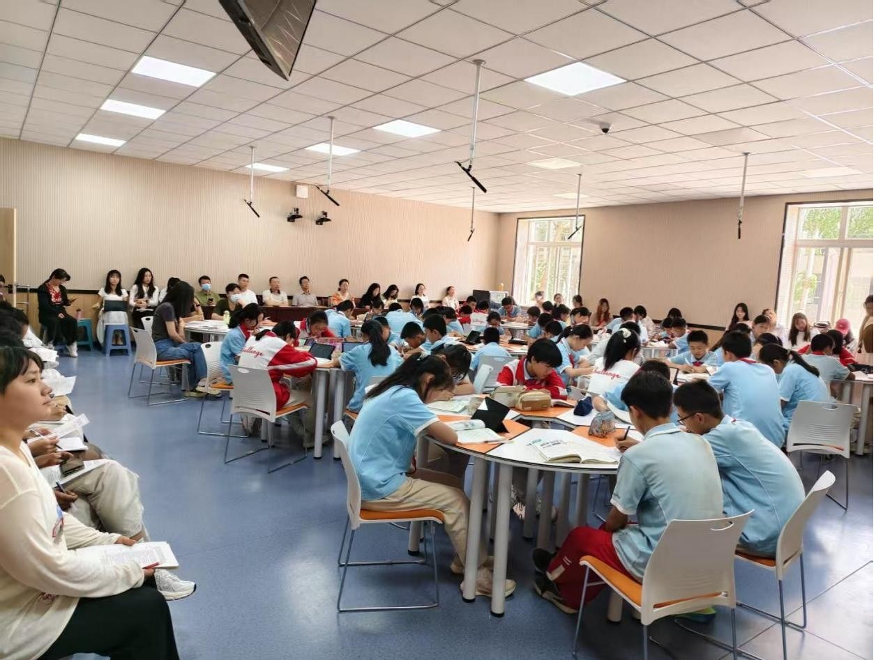 见习师范生认真聆听并记录教学全过程。通过此次见习,他们意识到,教学设计要源于真实生活,这样可以让学生走进语言运用的现实场景,激发学习动机、兴趣和参与热情。