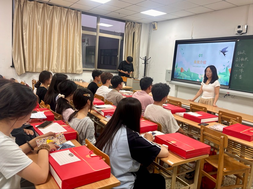 随后,见面会进入互动环节。新老生依次进行自我介绍,现场氛围逐渐活跃。2024级的学长学姐们结合自身经历,分享了俄语学习的宝贵经验:从初学时的发音挑战到逐步掌握语法技巧,再到通过专业课学习加深对俄罗斯文化的理解。他们坦言,学习过程中既有困惑也有突破,但每一次努力都让自己离目标更近一步。此外,学长学姐们还生动描述了班级生活的多彩瞬间,如俄语书法大赛、节日庆祝等,让新生对未来的大学生活充满期待。