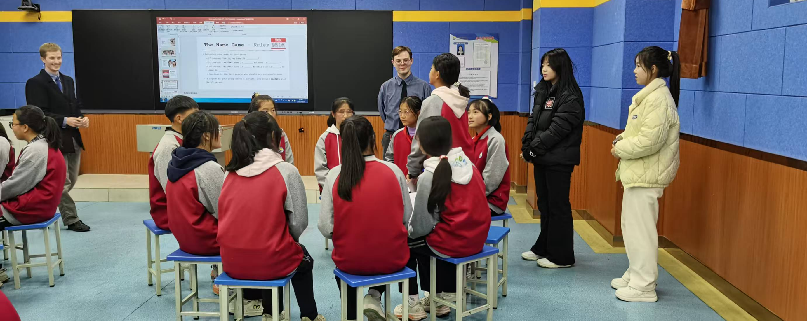 精心选派的外教与师范生组成教学团队,为闽宁二中的30名学生带来一堂生动活泼、互动充分的“沉浸式”英语课。课上师范生积极发挥专业特长,与外教共同设计贴近学生生活的情景对话,有效激发乡村学生对英语学习的兴趣。从基础的问候互动到围绕“兴趣爱好”等话题的小组讨论,师范生耐心引导学生参与,细致纠正发音,不断鼓励学生克服紧张情绪、勇于开口表达。中学生们从最初的腼腆拘谨逐渐转变为踊跃举手、积极互动。