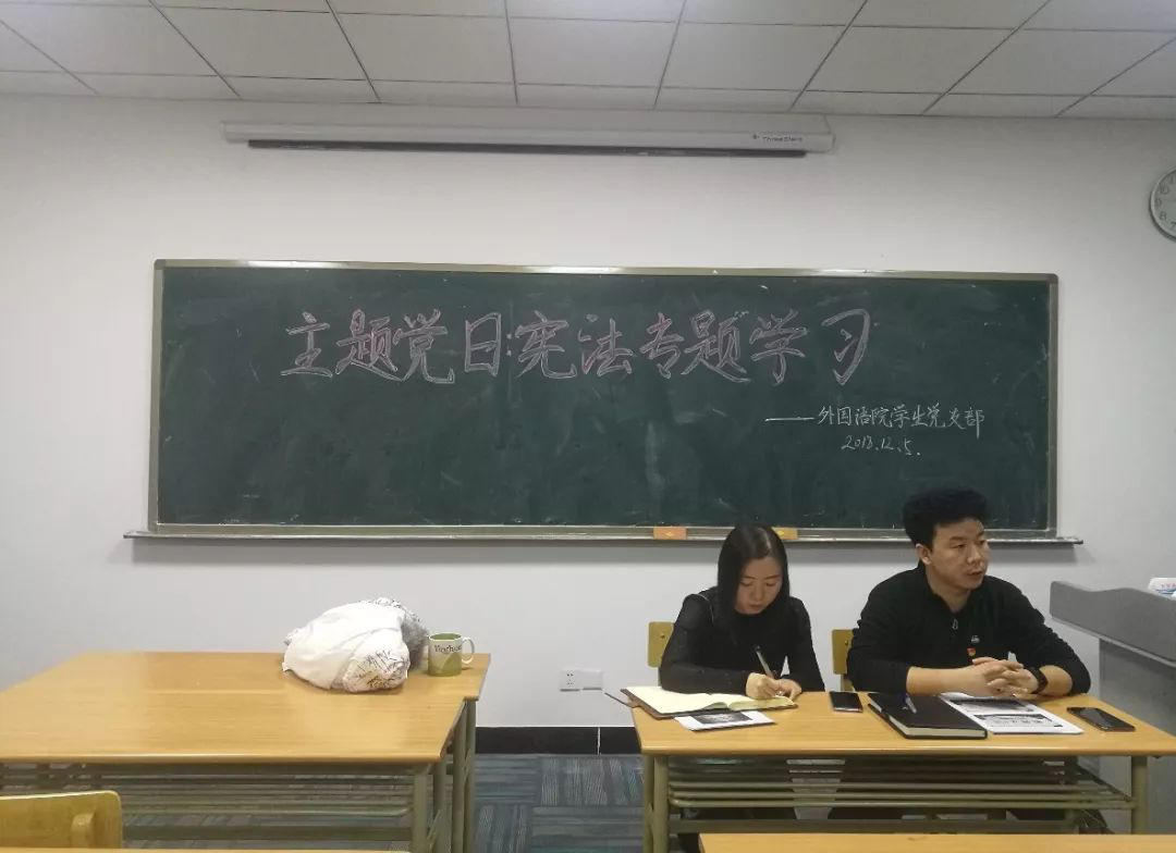 学生党支部学习《中华人民共和国宪法修正案》“主题党日活动”在致远楼314教室举行,活动由h韩漫